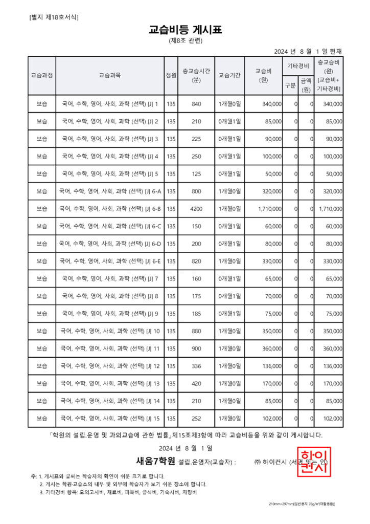 * ‘공공데이터의 제공 및 이용활성화에 관한 법률’에 의거하여 이용 제한이 없는 공공데이터를 활용해 운영되는 서비스이므로, 정보의 활용에 대해 학원 또는 교습소의 사전허가 없이 이용할 수 있습니다.