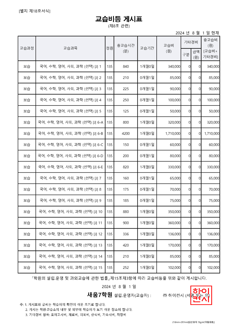 새움7관학원